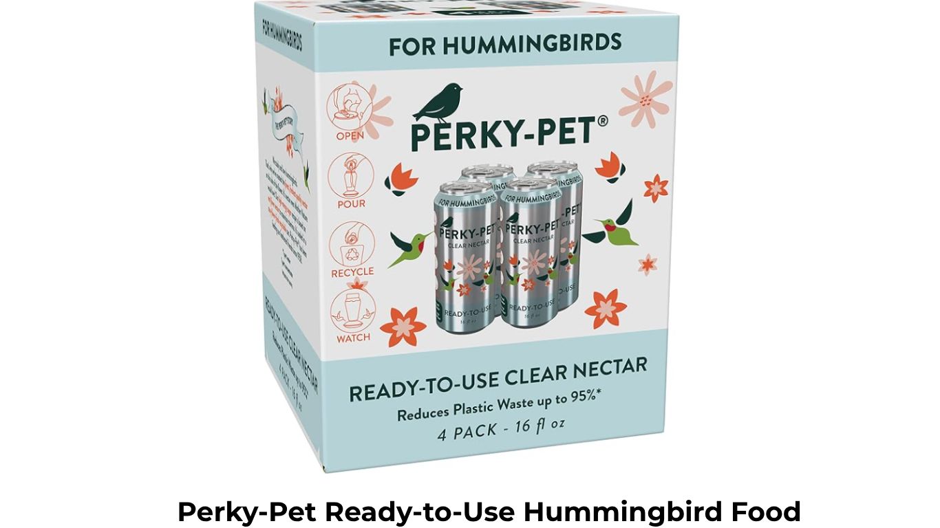 The fact it comes in infinitely recyclable aluminum cans is why Perky-Pets’ Hummingbird Food is our top choice.